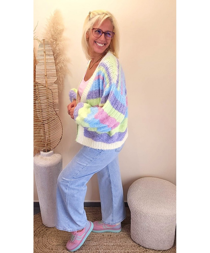 Le Gilet Rainbow Douceur est la pièce coup de cœur qui illumine instantanément une tenue.