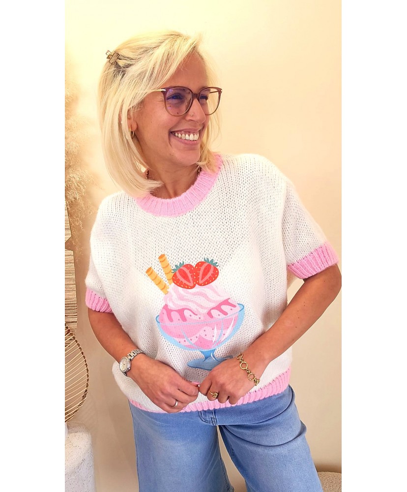 Le Pull Strawberry Sundae est la pièce coup de cœur qui apporte immédiatement fraîcheur et douceur à votre tenue.