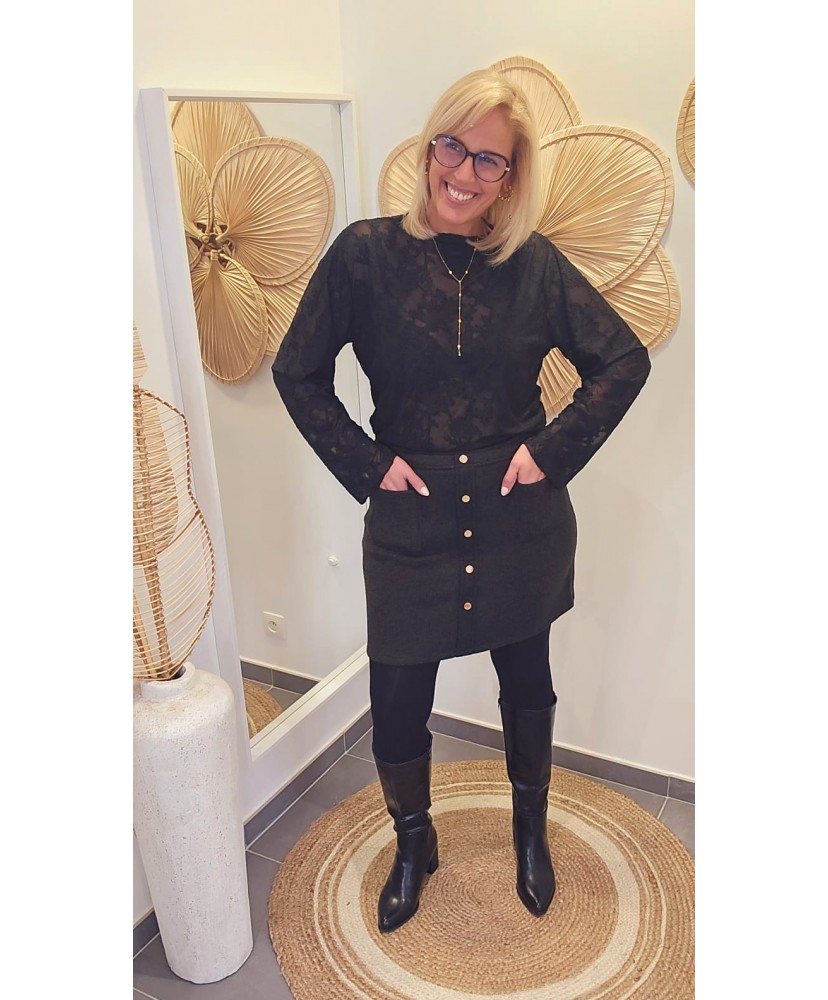 Jupe Noire Boutonnée - Ava