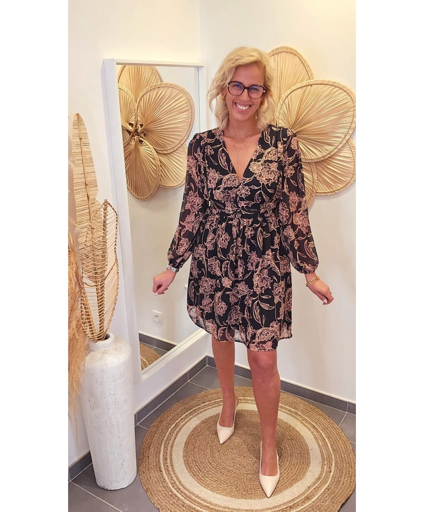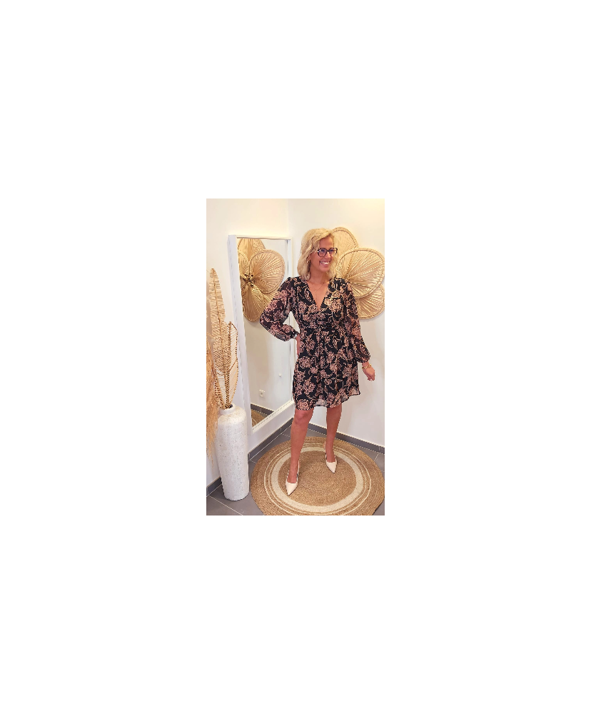 Laissez-vous séduire par cette ravissante robe portefeuille à l’imprimé floral délicat, pensée pour sublimer toutes les silhouettes. Son décolleté croisé, très flatteur, met en valeur le buste tout en restant élégant, tandis que sa taille élastiquée assure un confort optimal du matin au soir.