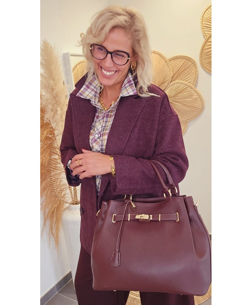 Sac d'Italie Cuir Burgundy Fermoir Doré