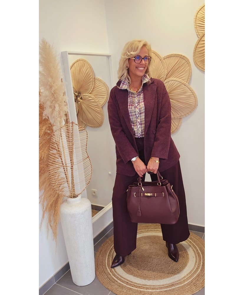 Sublimez votre allure avec ce sac en cuir grainé burgundy, une pièce chic et intemporelle qui allie élégance et praticité. Confectionné dans un cuir de qualité, il se distingue par sa belle texture grainée, ses finitions dorées raffinées et son fermoir métallique tournant qui lui confère une touche sophistiquée.