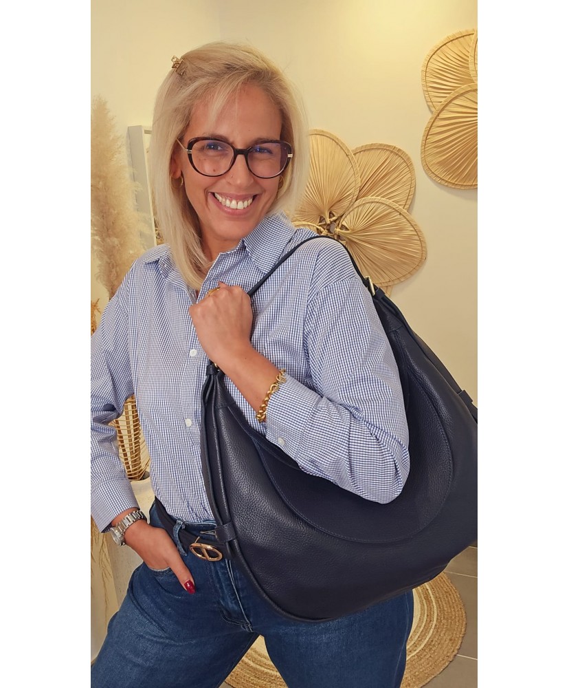 Sac d'Italie Cuir Bleu Marine Hobo Chic
